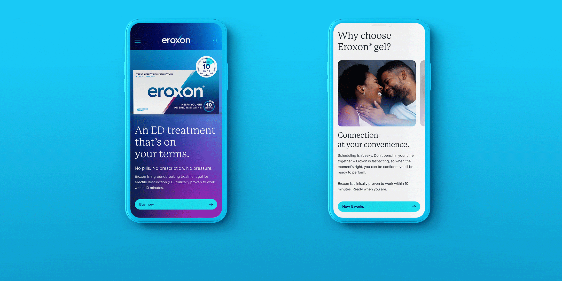 A brand voice is the vehicle for personality, shaping perception and building familiarity. Guided by audience insights, we infused an understanding, warm tone with a confident playfulness for Eroxon® – accessible, but credible.